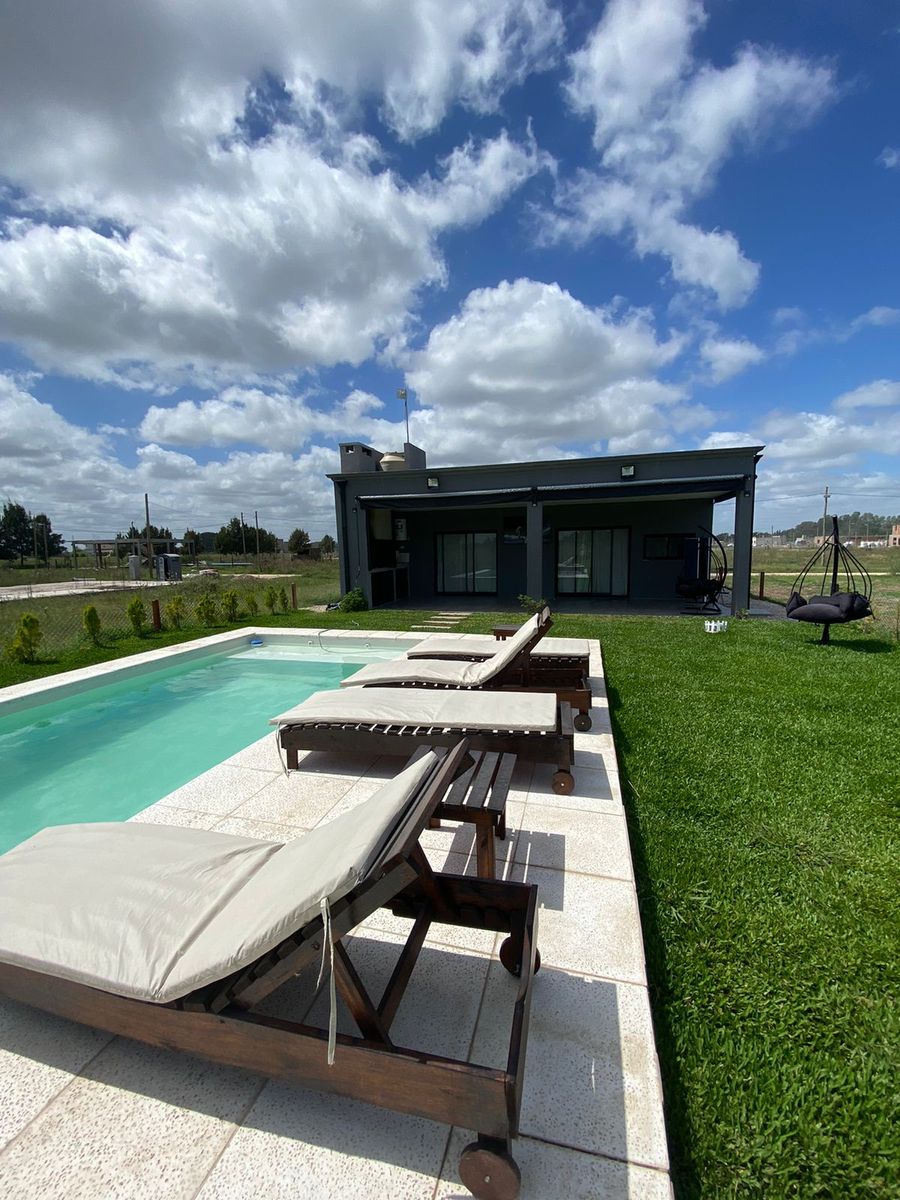 Código 3352-casalpu | CASA EN EXCELENTE ESTADO (TIENE UN AÑO DE ANTIGUEDAD), SOBRE LOTE DE 600M2, EN URBANIZACION PROTEGIDA, CON SERVICIO DE PORTERIA Y VIGILANCIA 24HS. DOS DORMITORIOS, COCINA-COMEDOR, LIVING, GALERIA CUBIERTA, JARDIN, PISCINA AUTOMATIZADA.